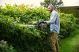 Thanks to its dual action syncro gearbox powering two blades at 3500spm, the HT 700e cordless hedge trimmer enables you to cut continually for up to 40 minutes on one charge. The 56cm double-action laser-cut blades cut easily through branches with a diameter up to 2.6 cm. For your comfort, you can adjust set the 180° rotating handle to five different positions. While for optimum safety, a hand guard protects you while you work. The ergonomic rear handle is made from soft rubber, so it's always a pleasure to use. To protect your hedge trimmer from damage on hard surfaces, the HT 700e comes with handy blade tip protection. And it features a handy hanging hole, so you can easily store your electric hedge trimmer away. Battery and Charger NOT included, available as an optional extra.